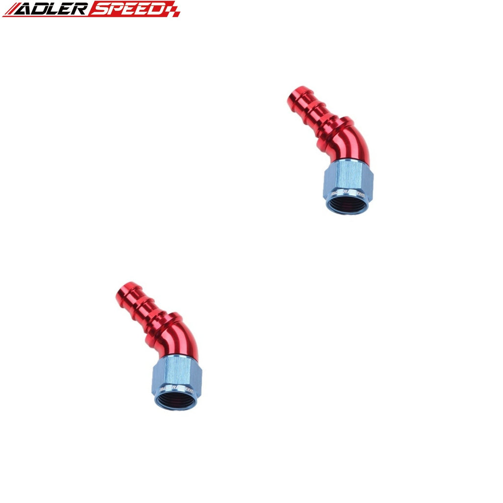 US SHIP ! ADLERSPEED 2PCS -12AN AN12 45 Degree Push-Lock Hose End Full Flow Fitting Red/Blue