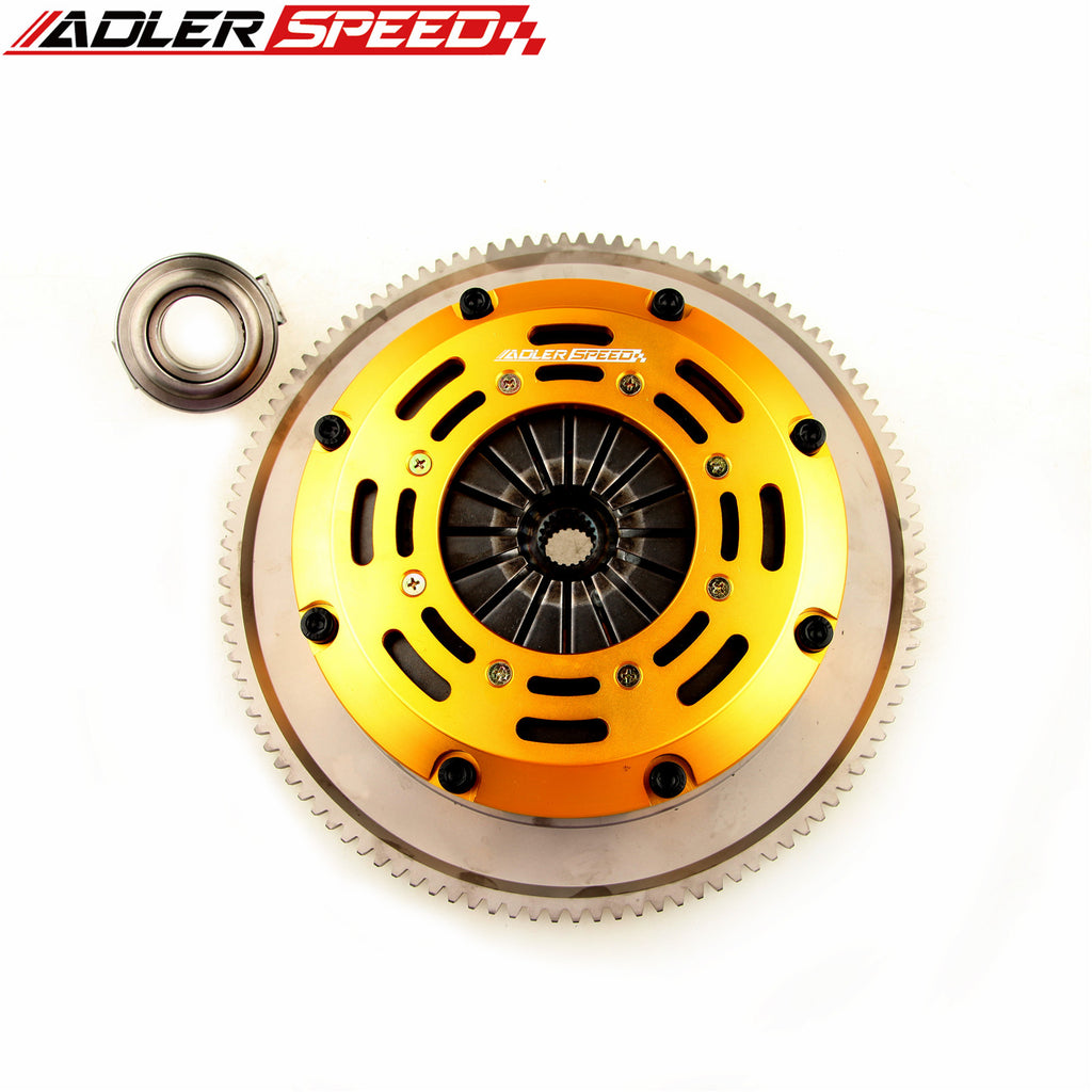ADLERSPEED 7.25inch series twin disc provides the most economical racing performance clutch for the active sport compact enthusiast. The clutch come with ceramic twin disc as well as one pieces of 4140 forged flywheel, clutch cover was made of 6061 T6 aluminum alloy complimented with a 6150 steel diaphragm.   torque capacity up to 1050Nm,Perfect for track/Pullying/Road racing/Drag racing/Hill climb/Club racing/Circuit racing performance.