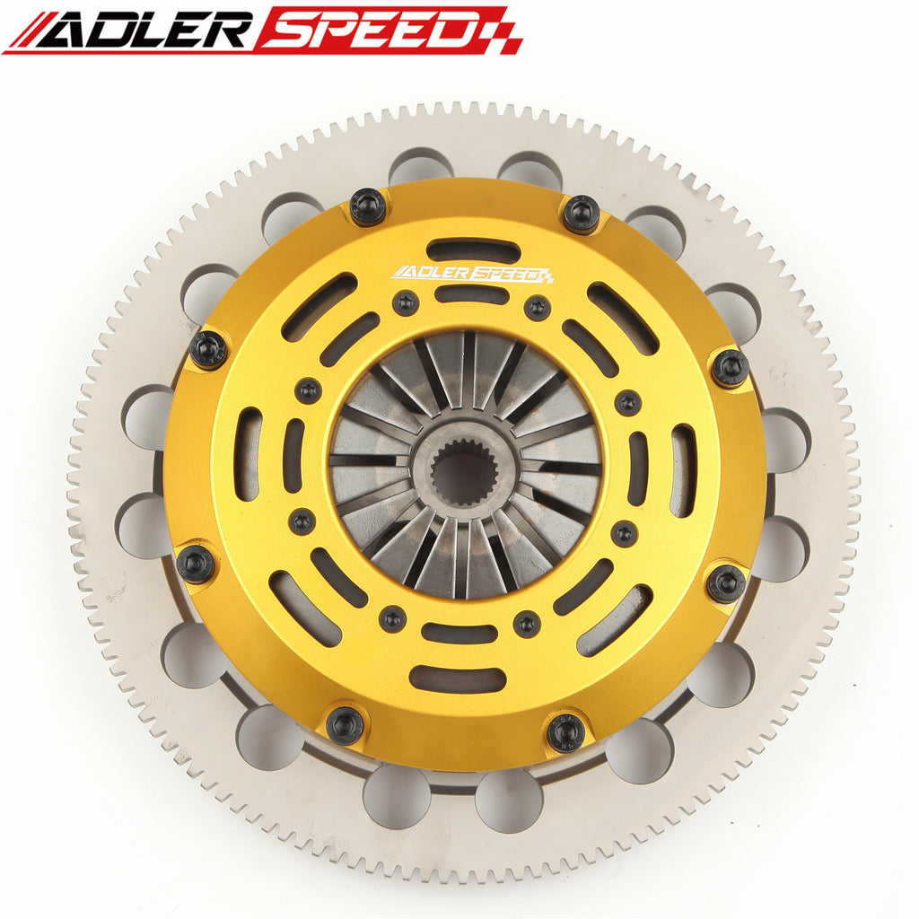 ADLERSPEED 7.25inch series twin disc provides the most economical racing performance clutch for the active sport compact enthusiast. The clutch come with ceramic twin disc as well as one pieces of 4140 forged flywheel, clutch cover was made of 6061 T6 aluminum alloy complimented with a 6150 steel diaphragm. torque capacity up to 1050Nm. Perfect for track/Pullying/Road racing/Drag racing/Hill climb/Club racing/Circuit racing performance.